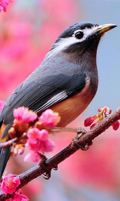 Download Free Cute Bird On Pink Flowers Iphone Wallpaper Mobile